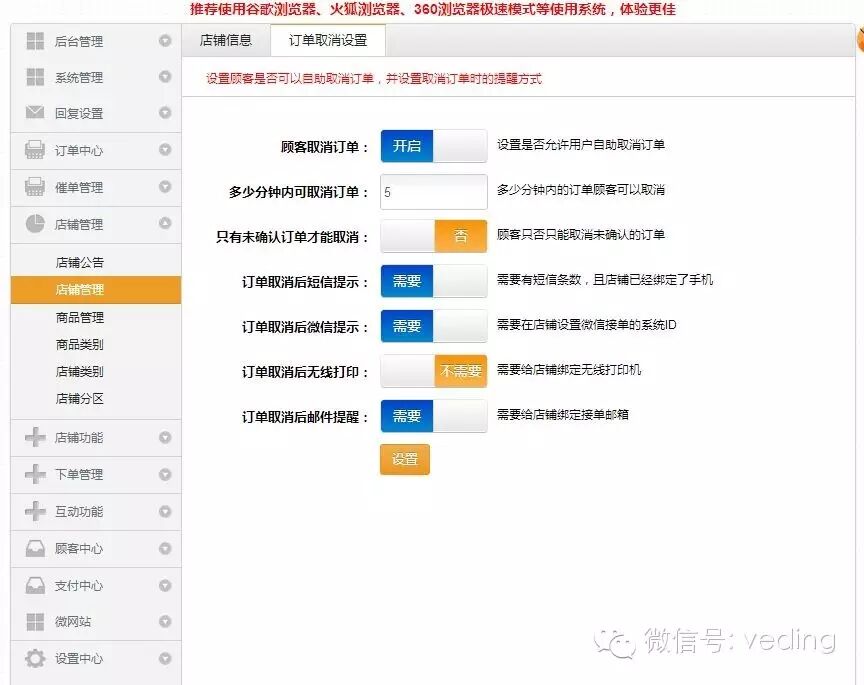 除此之外,商家还可以相应的设置取消订单后短信提醒,微信提醒,打印机打印以及邮件提醒等方式,让商家第一时间知道有取消的订单。