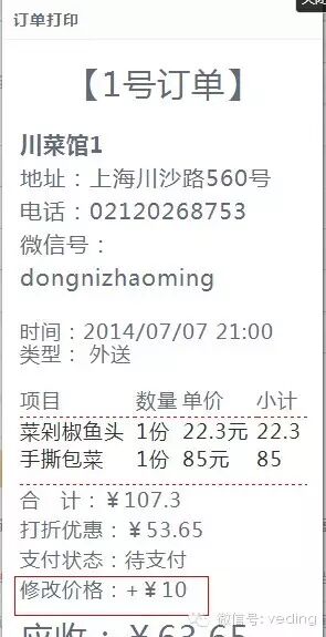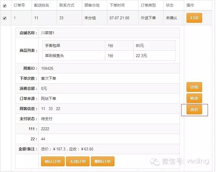 我们都知道淘宝是国内最大的电子平台之一,顾客在淘宝店铺购买宝贝后,商家可以对其订单进行价格修改,灵活的解决了因顾客操作失误造成的订单问题,这功能在电商行业是非常实用的,微订取长补短,也将这一功能融入到系统中来,顾客在微信端下单之后,商家可以在微订系统后台进行订单的修改,可以任意的调整订单的价格,大大的减少了无效订单的产生,让每一个顾客都拥有满意的订单。