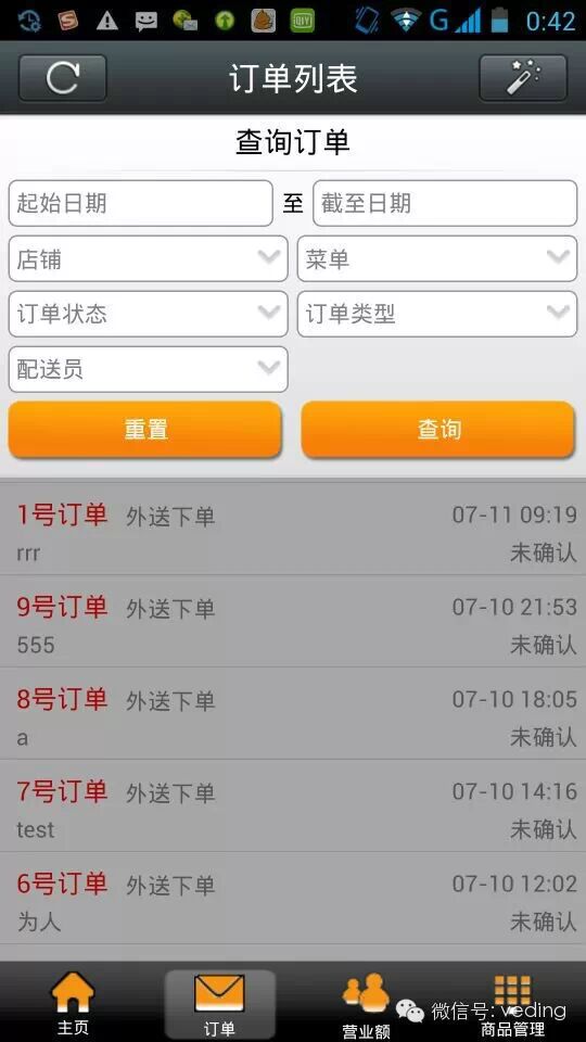 在订单查询中新增了“配送员查询”,通过筛选条件就可以查询该配送配送的订单,如下图所示