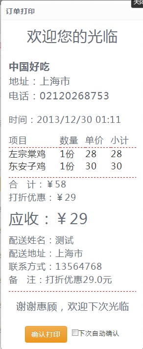 这样,顾客下单后系统就会自动按您的设置进行打折了,如下图是下单打折后: