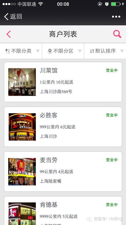 店铺列表全部改版,支持类别、分区筛选及各种排序方式!