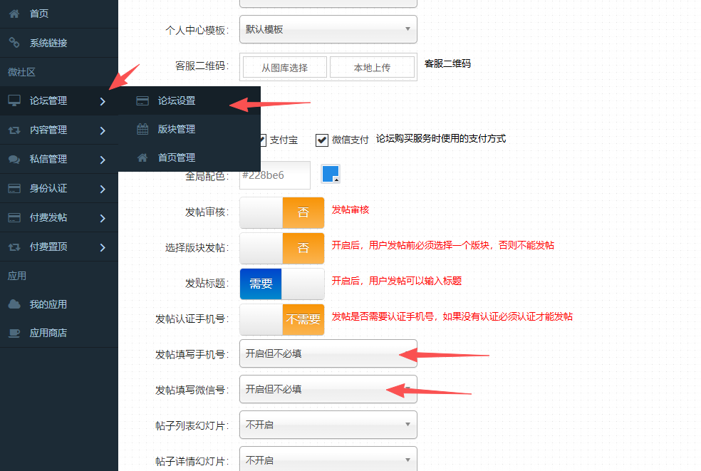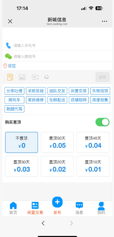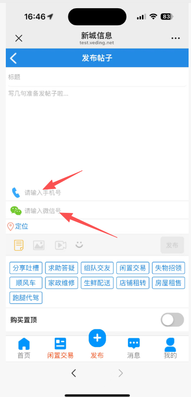 二、新增发布时填写电话和微信,并且值得一提的是,此功能可关闭、可开启、可必填、可非必填