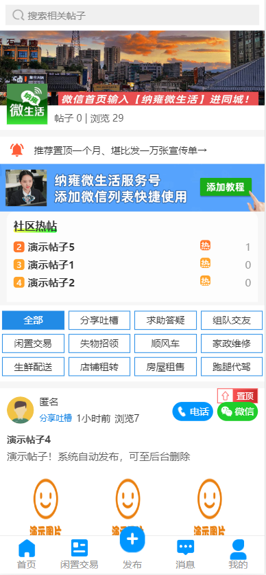 三、新增帖子列表里的定向广告,可设置在第几个位置出现你设置的广告(类似微信朋友圈广告)