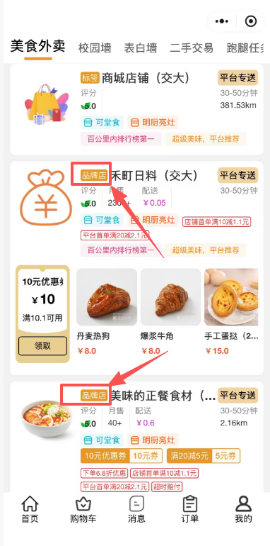 三、店铺列表功能升级,新增一个小图标的优惠券显示(显示成:“3元券”这样)之前只有左侧的大优惠券显示