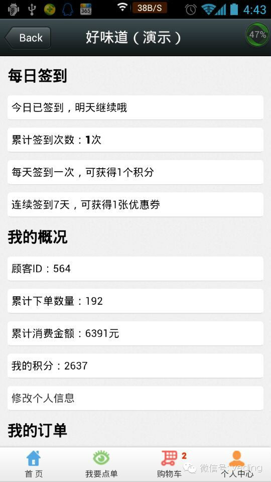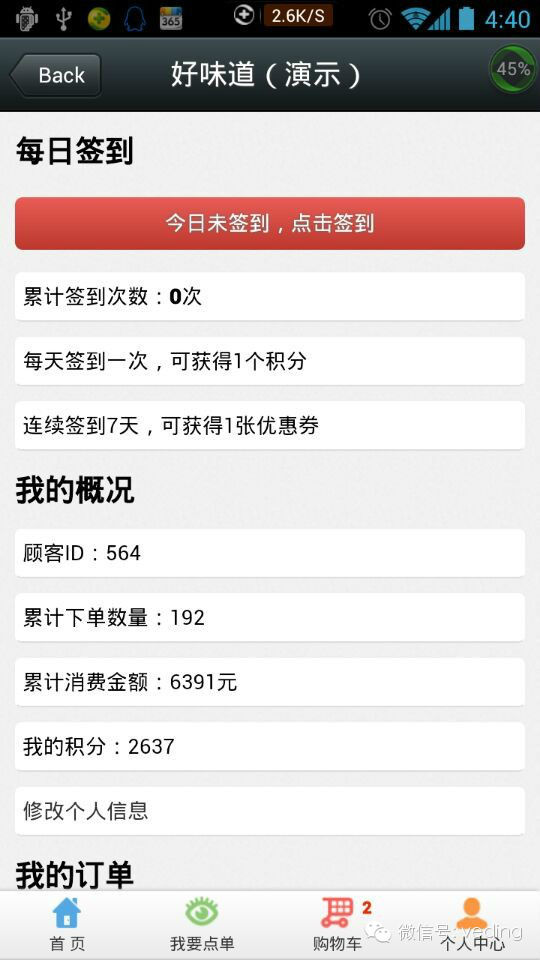 相信绝大一部分人都知道qq空间的签到功能,这使得千万级的qq用户为之注目。同样,微订此后也支持签到功能啦,通过此功能,能让店家更好的拉稳顾客,实现更好的微信营销。