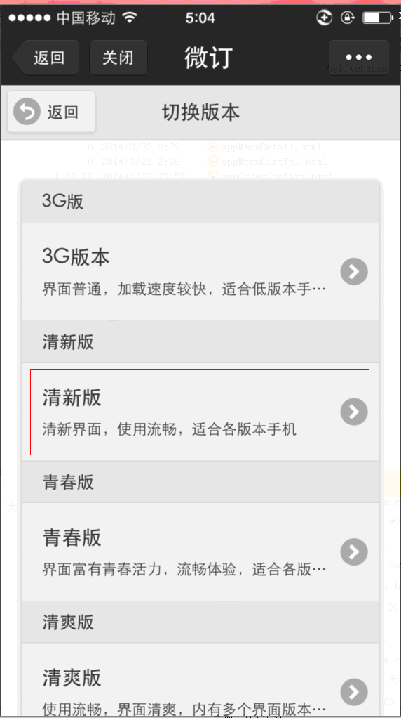 如果未强制使用此版本,则在微信端有很多入口可进入“清新版本”,如下: 其它版本也有入口: