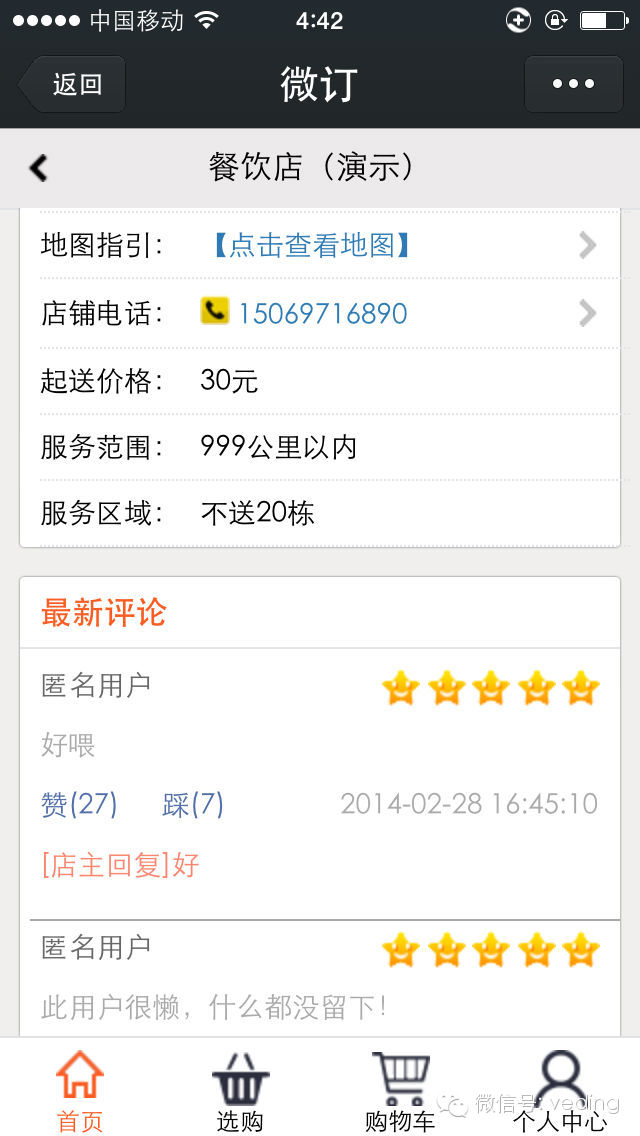 先上图: 一、店铺首页依然清爽,幻灯片、地图指引、直接电话、店铺评论一应具全: