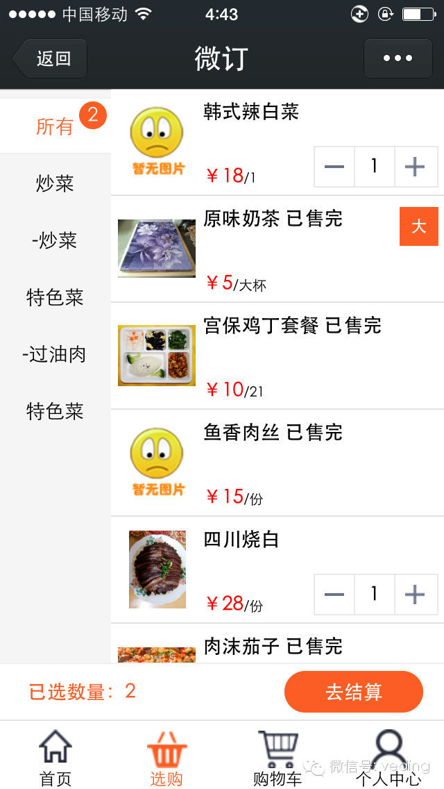 二、其次是商品列表,这次此次更新的重要变革,采取了商品分类居左显示的方式,让顾客更容易下单。每一个商品都清晰明了:
