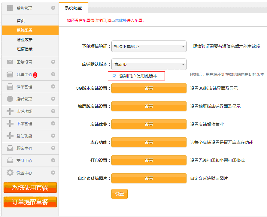 首先,进入系统后台,设置是否使用此版本: 当然,您如果觉得此版本好,还可以强制用户使用此版本,那么用户就不能在微信端自由切换了: