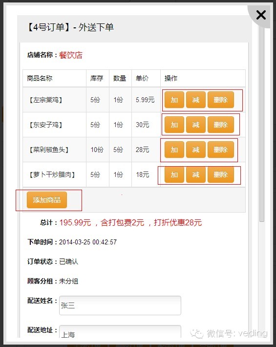 |    订单功能再次升级,支持订单商品修改    admin 发表于 2014-03-26 01:12:04   微订哥这次又给大家带来了款强大而实用的功能。