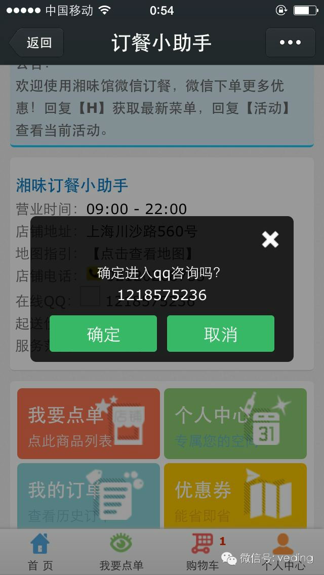 | 店铺支持QQ在线咨询,即时聊天不在遥远 admin 发表于 2014-03-31 01:43:06 在微信点单中商家与用户的沟通一直是大家关注的,采用什么样的方式沟通最快,最便捷呢?这里微订哥给出了答案:QQ在线咨询,即时聊天,微订店铺支持QQ在线咨询,即时聊天不在遥远,拉近了商家与用户的距离,让微信点单更加便捷,商家如何实现QQ在线咨询呢? 1、商家需要在微订系统后台,“店铺管理”新建店铺或者修改店铺,填写“在线QQ”的号码即可,点击下面的“保存”完成后台设置。 2、用户只需进入店铺首页就可以看到qq在线咨询的图标,如图所示: