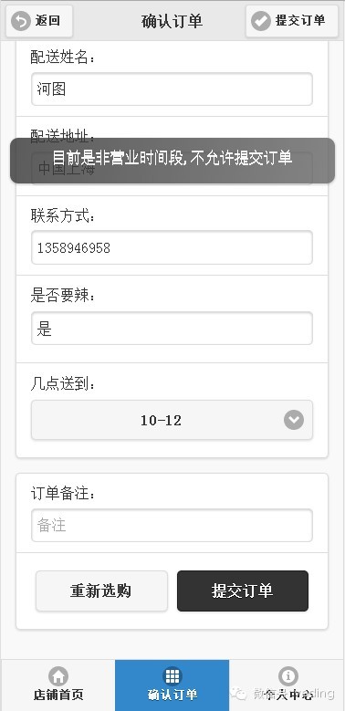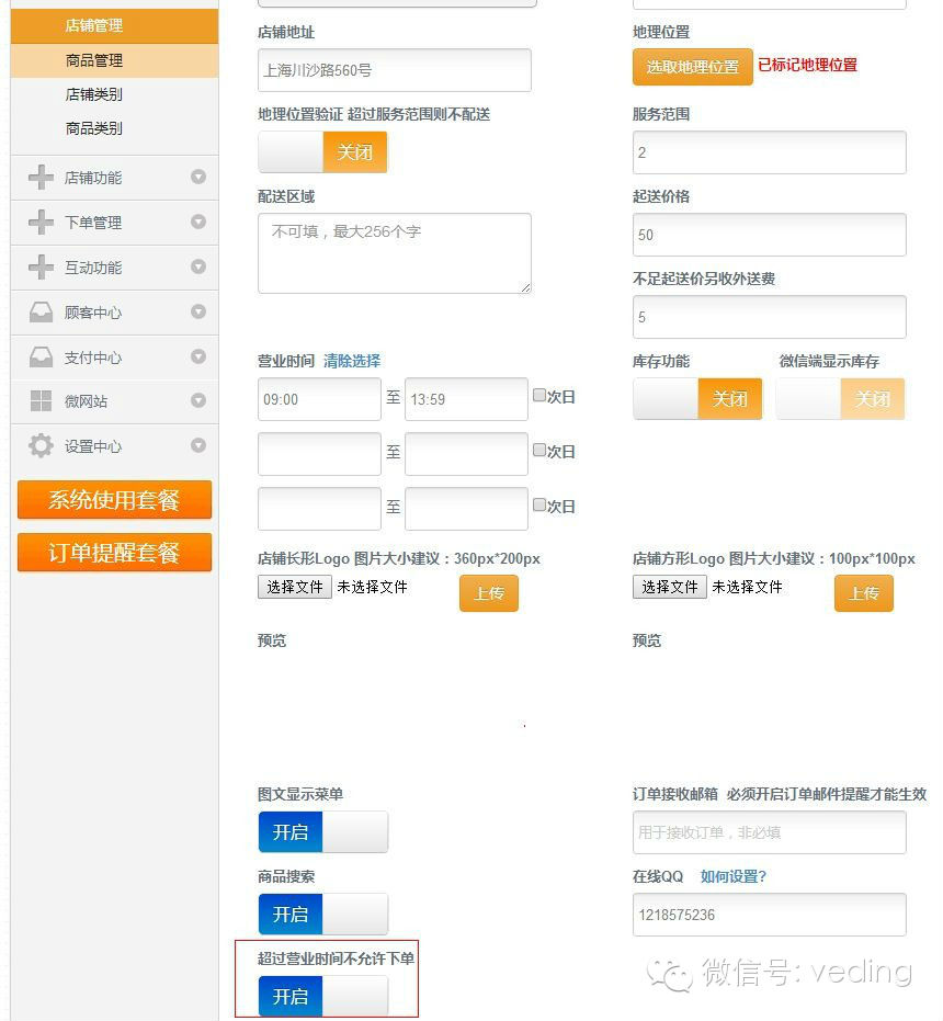 营业状态和非营业时间下单设置发布 admin 发表于 2014-04-18 02:33:58 这次我们继续优化用户反馈功能:店铺列表显示营业状态;商家自定义非营业时间段下单设置。多用户反映店铺列表需显示营业状态,即所在店铺是否处于营业中,顾客通过营业状态就能知道该店铺是否在营业,正确的引导用户进行微信下单,同时也避免了无效订单的产生。还有就是非营业时间段是否需要接收订单,这个问题一直有争议,对此工程师们也作出了解决方案,在微订系统后台设置了一个开启关闭接收订单按钮,让商家自定义是否接收订单,人性化的设计,多方位的体验我们做到了,还在发愁吗?一起看看呗! 1、非营业时间段下单设置。商家在后台“店铺管理”功能模块中“店铺管理”,修改店铺,设置是否开启“非营业时间段不允许下单”功能,如图所示: 系统默认是可以下单的,如果不需要下单,那么选择“开启”。 开启“非营业时间段不允许下单”设置后显示不允许下单。 2、店铺列表显示营业状态,这个功能主要是显示店铺是否在营业中,如图所示: 我们将陆续完善用户反馈功能,尽最大努力将用户体验做到极致。后续将有更多功能提供给大家,敬请期待! 下一条:用户反馈功能优化升级 免责声明:部分文章信息来源于网络以及网友投稿,本网站只负责对文章进行整理、排版、编辑,是出于传递更多信息之目的,并不意味着赞同其观点或证实其内容的真实性,如本站文章和转稿涉及版权等问题,请作者及时联系本站,我们会尽快处理。 责任申明:官方所有内容、图片如未经过授权,禁止任何形式的采集、镜像,否则后果自负! 标题:营业状态和非营业时间下单设置发布 地址:https://www.veding.com/static/v2/notice/120.html 相关资讯
