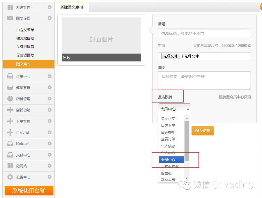 图文素材也可以跳转进入会员中心咯,赶紧去设置吧。