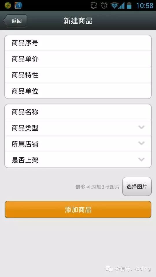 二、这次还带来了商品新增功能,意味着商家在手机客户端就可以完成新商品的添加了,减去了繁琐的登陆系统后台,走到哪儿都能新增商品了。