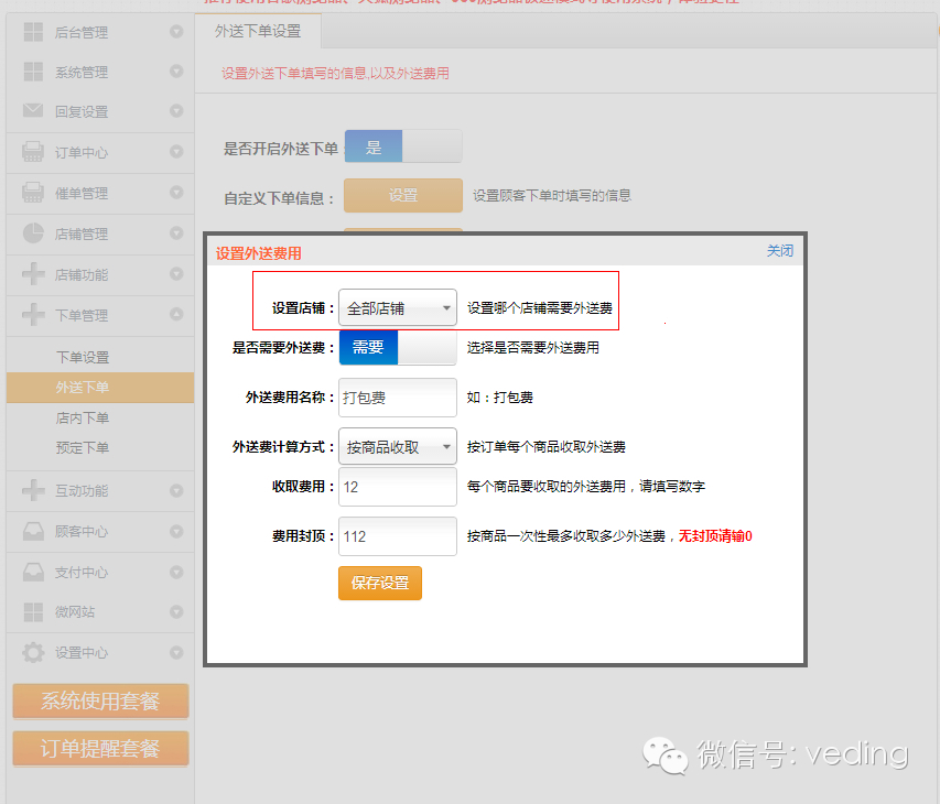在外送过程中,总是会涉及到外送费用,常常会遇到开不同类型的多店铺商家,此类商家是不希望每个店铺的外送费用一样,为满足此类用户的需求,特对外送费用进行分店铺设置,当然店铺的类型不同,外送的费用也有所不一样,你可以方便的设置每个店铺的外送费用。