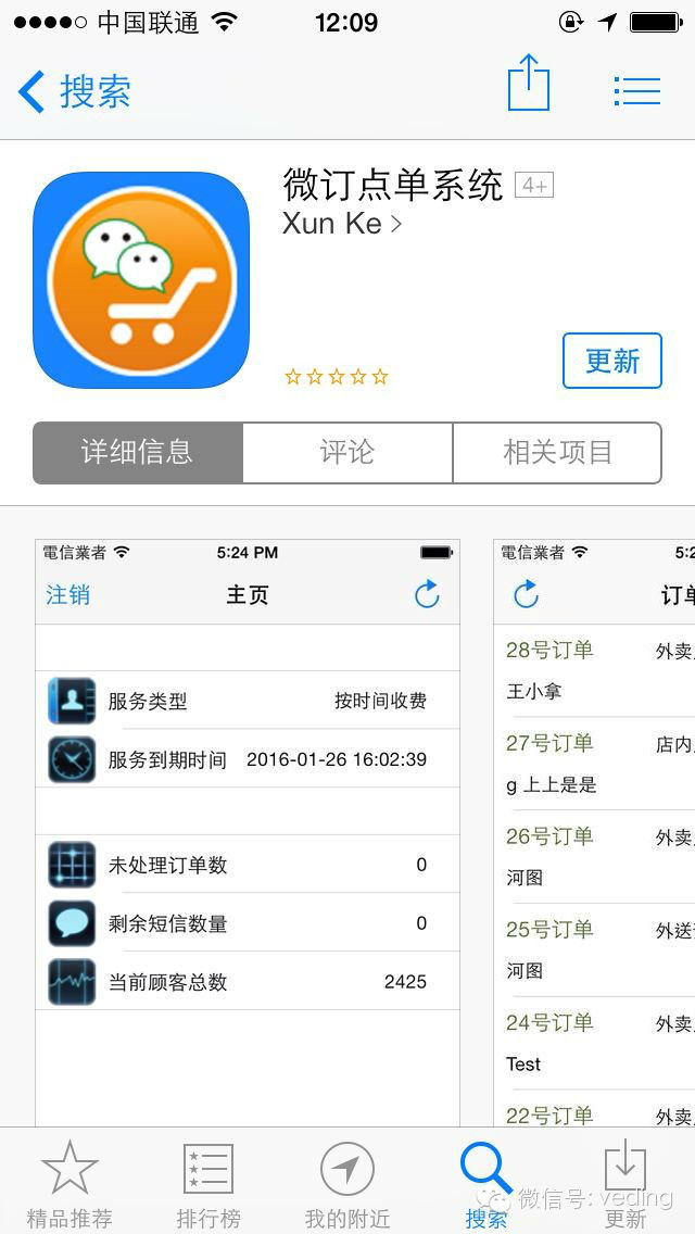 如图,搜索出“微订点单系统”后,即会显示更新: