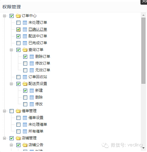 注:以上权限是一些基本操作控制,如果某些商家有其它权限还需要控制,可联系微订客服。凡是有利于用户使用的功能,微订必将采纳!