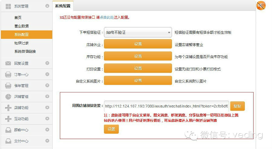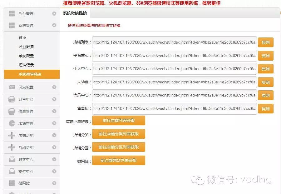 再次温馨提示用户,微订系统提供了各模块的独立进入店铺,这些链接都可用于自定义菜单、图文消息、群发消息、分享信息等一切可以在微信上跳转的地方使用。甚至,用户无需关注您的公众号,也可以通过系统独立链接进入。大家可以系统中获取: