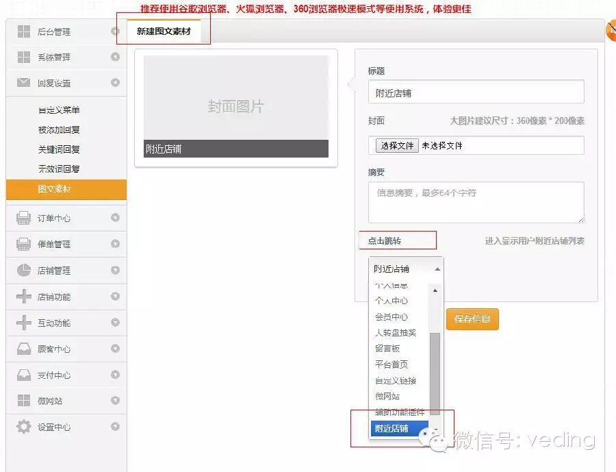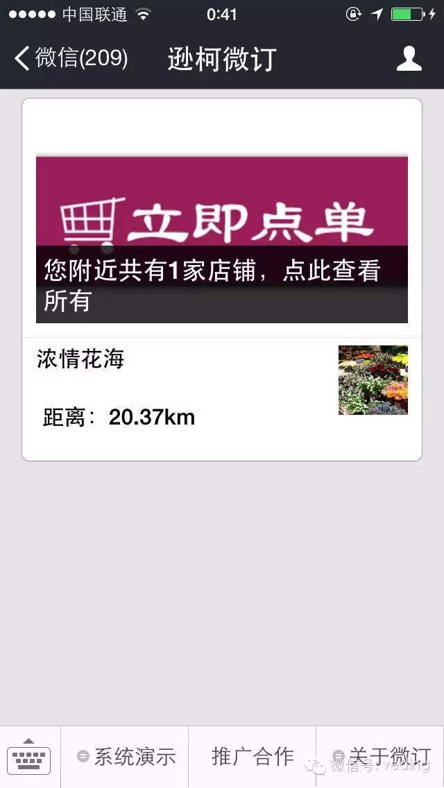 这些链接用处都非常之大,对你的微信推广起到了非常大的作用。微订将继续为大家实现每一个实用,好用,易用的系统功能,为大家提供更好的服务。 上一条:会员系统升级,支持会员在线申请 下一条:系统各模块链接现已全面开放啦 免责声明:部分文章信息来源于网络以及网友投稿,本网站只负责对文章进行整理、排版、编辑,是出于传递更多信息之目的,并不意味着赞同其观点或证实其内容的真实性,如本站文章和转稿涉及版权等问题,请作者及时联系本站,我们会尽快处理。 责任申明:官方所有内容、图片如未经过授权,禁止任何形式的采集、镜像,否则后果自负! 标题:新增附近店铺功能,更加高效的引导用户进入点单 地址:https://www.veding.com/static/v2/notice/187.html 相关资讯