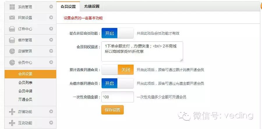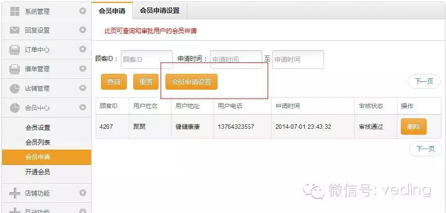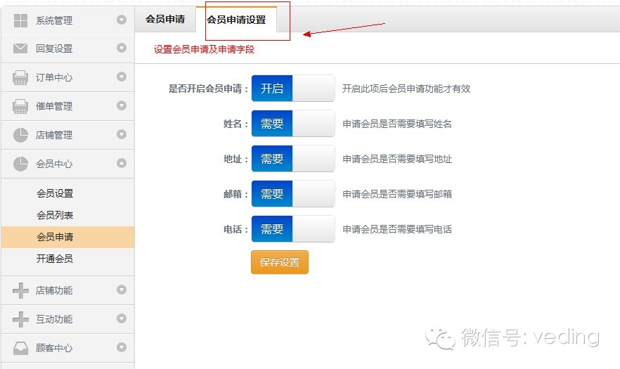 然后,在会员中心,会员申请中进行“会员申请设置”,如上图所示。
