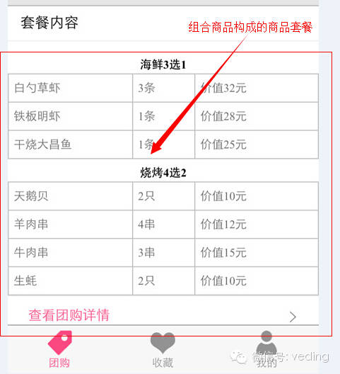 2、顾客点击进入商品套餐详情: (1)商品套餐抢购信息:
