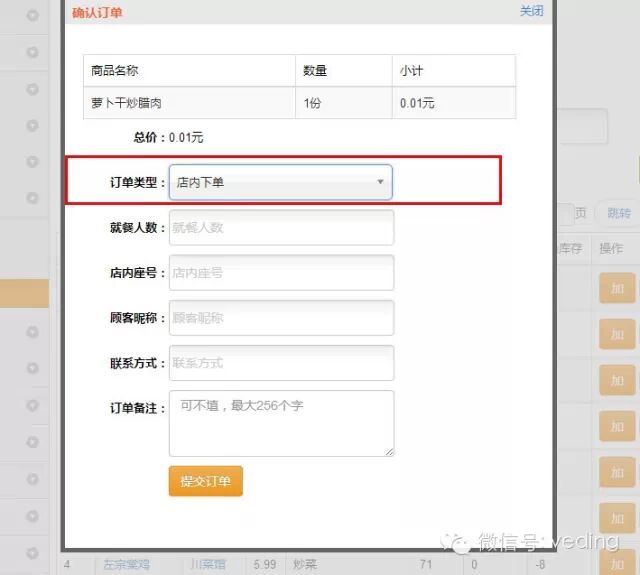 前几天我们推出了“代客下单”功能,大家纷纷表示这个功能好用,但在实际操作的时候发现其中的下单类型太局限了,只支持外送下单,为了解决这个问题我们连夜将“店内下单”也加入进去了,这样很好的将店内外送融入“代客下单”功能中。如下图所示: