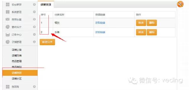 店铺类别新增序号,为了商家的店铺类别能很好的排序,新增了商品序号功能。