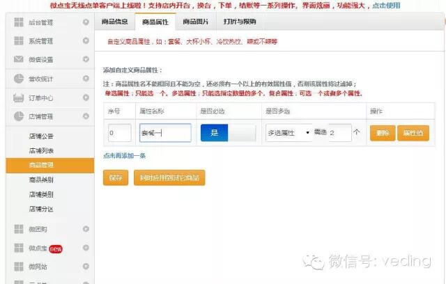 听了以上介绍是不是觉得商品属性多选如此强大。相信别的微信点单系统没有做的我们已经做到了,我们也会一直努力,把用户体验当作第一,让商家和客户能方便快捷的使用我们的系统,让用户体验倍增,让我们一起加油吧! 下一条:系统功能优化升级 免责声明:部分文章信息来源于网络以及网友投稿,本网站只负责对文章进行整理、排版、编辑,是出于传递更多信息之目的,并不意味着赞同其观点或证实其内容的真实性,如本站文章和转稿涉及版权等问题,请作者及时联系本站,我们会尽快处理。 责任申明:官方所有内容、图片如未经过授权,禁止任何形式的采集、镜像,否则后果自负! 标题:"唯美版"支持商品属性多选! 地址:https://www.veding.com/static/v2/notice/273.html 相关资讯