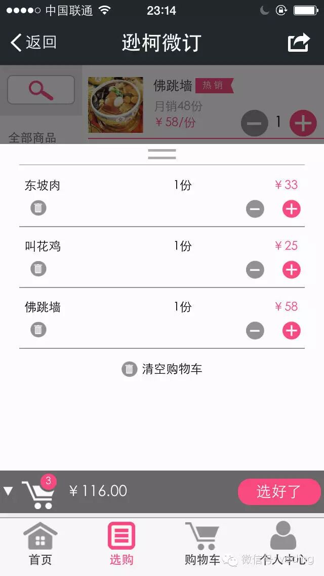 唯美版新增客户多地址功能,同时新增一键清空购物车功能 admin 发表于 2014-08-14 23:40:40 有这样一句古话:“顾客永远是上帝”,没错,顾客是我们的上帝,只有服务好我们的“上帝”才能取得好的收益。微信开店也同样如此,为了增强用户的粘性,那么就要让他们在使用微信下单的过程中感觉舒服方便,不仅是界面美观度,最主要是要突显微信下单的便捷,让他们觉得微信点单系统能比传统的点单方便快捷。因此,我们完善了用户下单输入地址的功能,采用的快捷的切换多地址方式代替地址的输入,新增“客户多地址切换”功能,大大的提高微信下单的效率,为用户节省宝贵的时间。