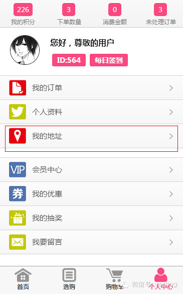 顾客如何新建多个地址呢?在微信个人中心“我的地址”中进行操作即可,如下图所示: