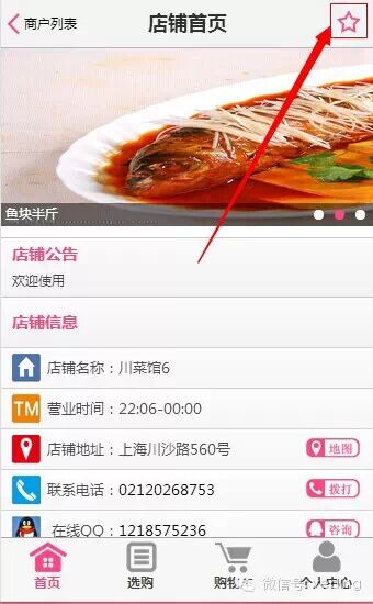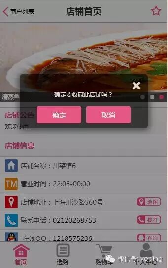 用户直接在“唯美版”店铺版本首页右上角就可以点击收藏按钮。如下图所示: 弹出对话框确认是否需要收藏此店铺,如下图所示:
