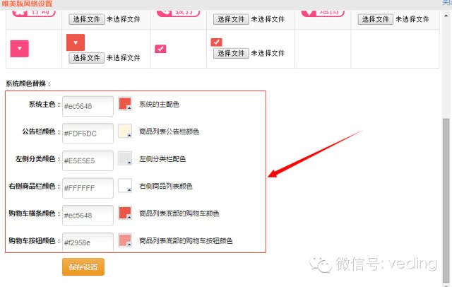 往下可以对店铺版本进行配色,选择你系统的颜色,打造自己的店铺风格。如下图所示: