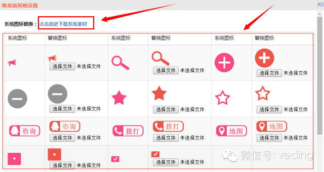 可以更换唯美版店铺模板的所有图标,你可以自己设计图标,也可以下载我们提供的“橘红色素材”。如下图所示可以下载素材: