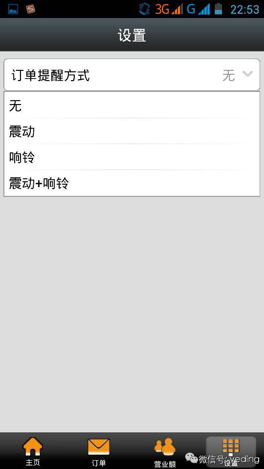 5、更让人兴奋的是微订手机端也可以提醒新订单了,再也不需要购买短信了,不需要登陆系统后台监听了,只需要登陆微订手机端即可设置手机响铃提醒,手机震动提醒,震动+响铃提醒等三种提醒方式即可像接收短信一样接收新订单,走到哪儿都能接收新订单了。