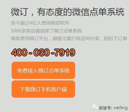 下载商家手机端app可以免费享受15天使用期限!!赶快去下载免费的微订app软件(目前支持安卓系统,ios版还在开发中)吧!