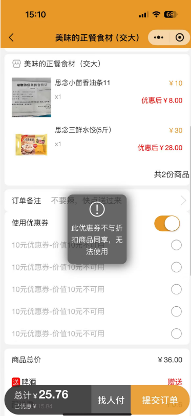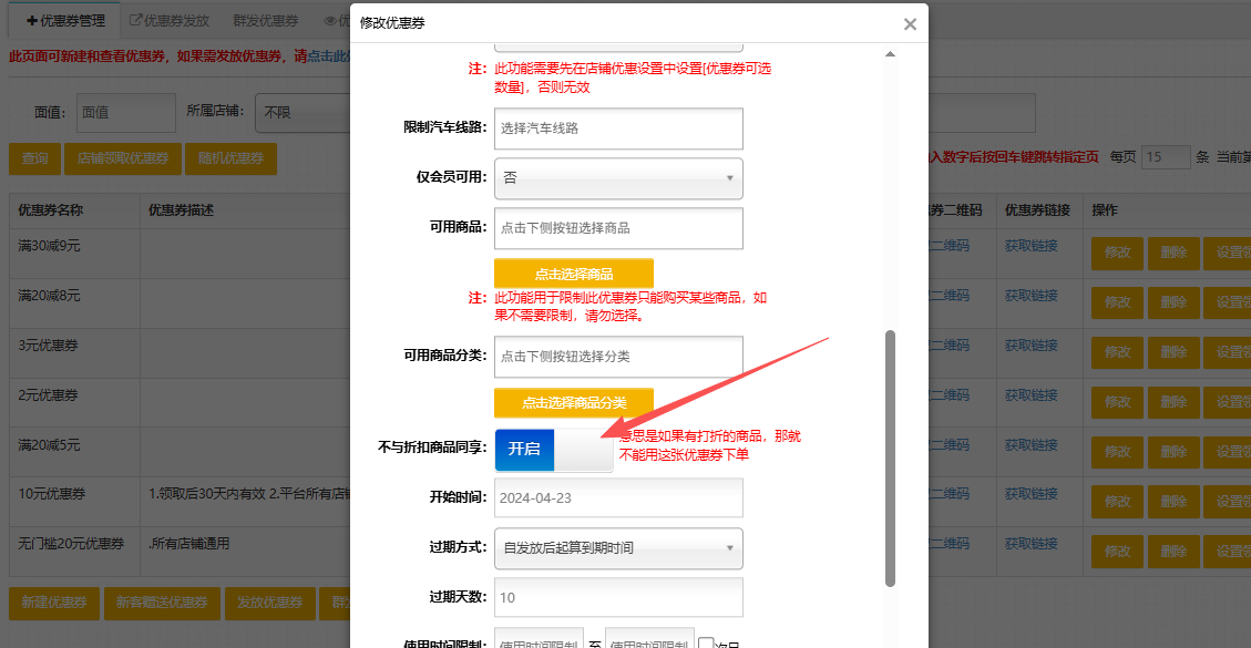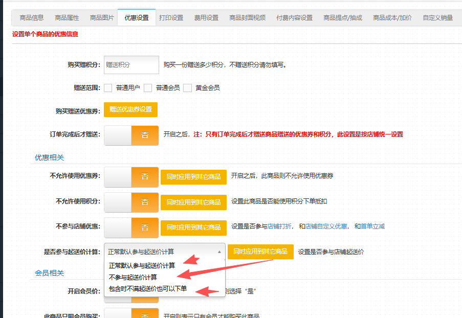 操作方式:商户-商品管理-修改-优惠设置