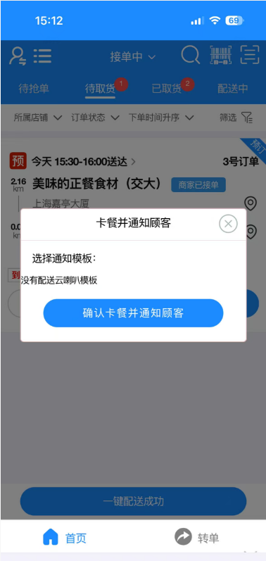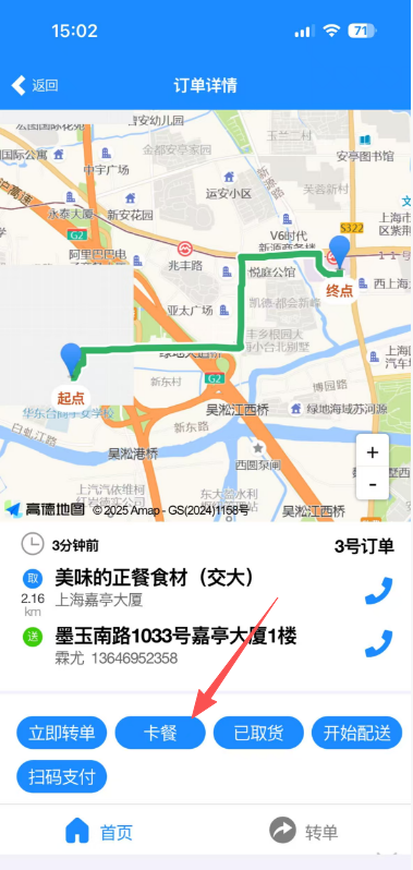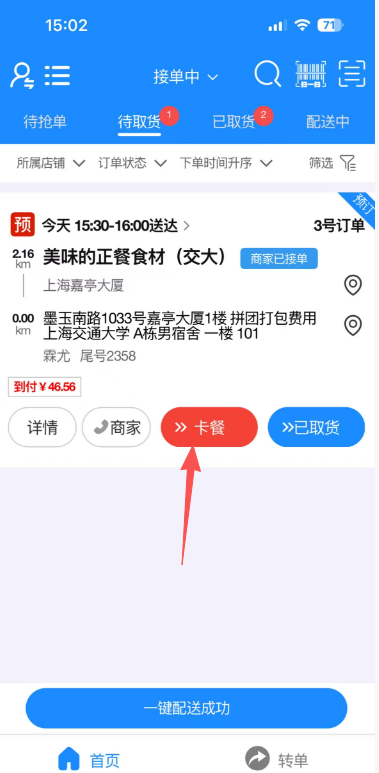 操作方式:设置好骑手的卡餐通知权限后,登入骑手APP-点击卡餐