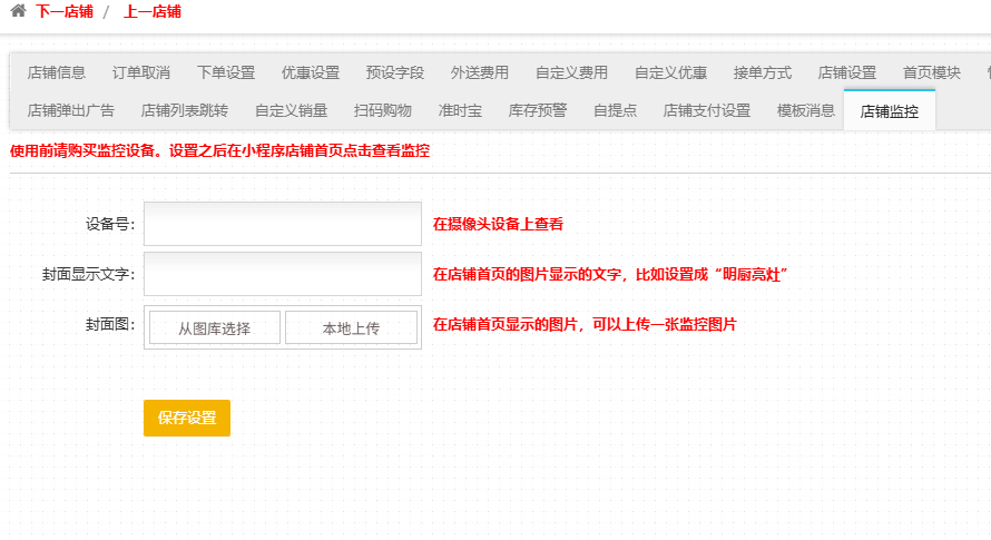 操作方式:商户-店铺管理-修改-店铺监控