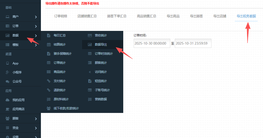 操作方式:数据-导出时间-导出税务数据