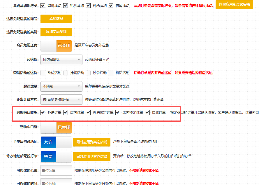 操作方式:商户-店铺管理-修改-外送设置