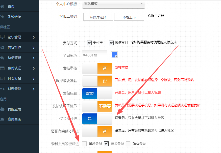 设置方法:微社区论坛系统-左侧-设置-开启仅会员可进
