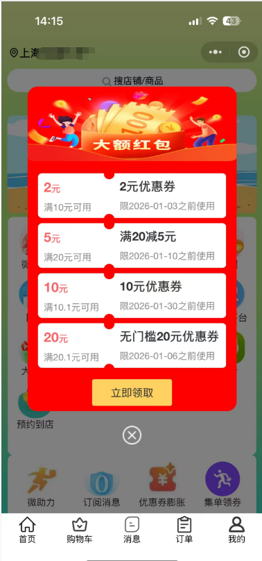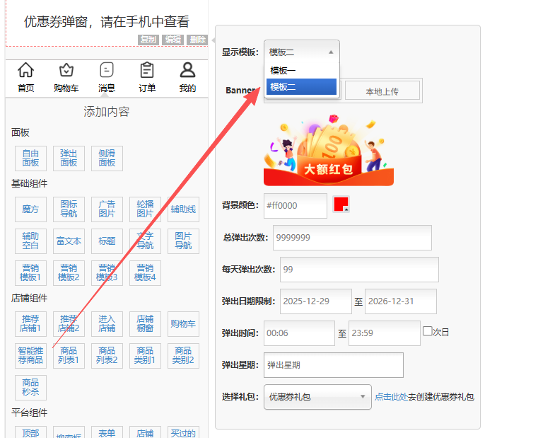操作方式:小程序-020平台-页面管理-“优惠券弹窗”组件