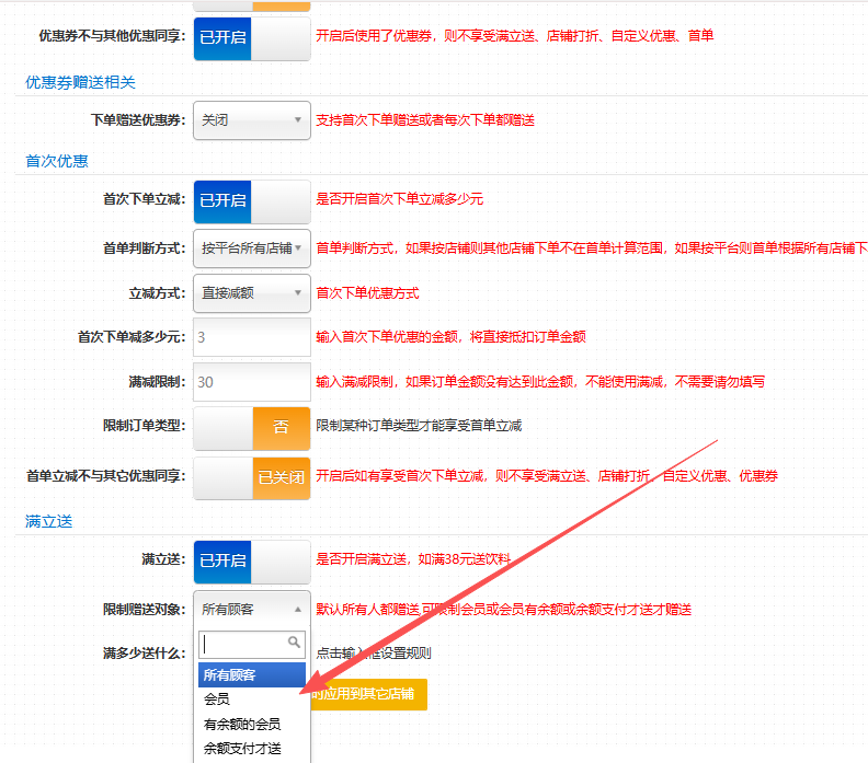 操作方式:商户APP-商品管理-编辑-优惠设置