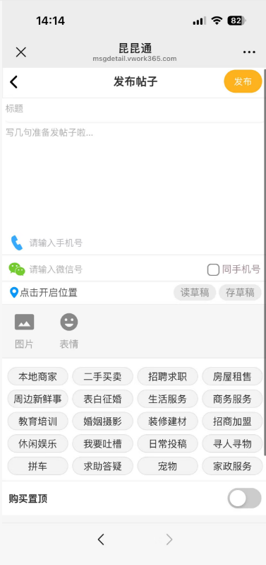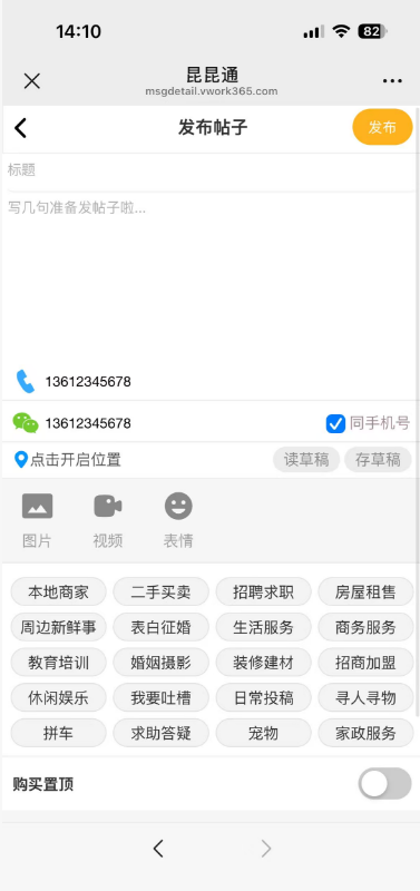 | 微订微社区论坛、同城系统1月23日号更新说明 admin 发表于 2026-01-23 14:42:34 一、论坛置顶功能更新,发贴界面可以控制是否自动显示置顶价格,不喜欢自动显示置顶的现在可以关掉了,关闭掉后就默认不展开置顶,点击之后再展开