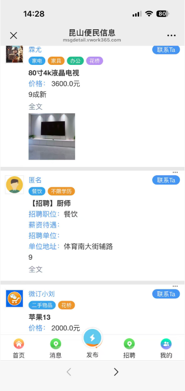 六、同城系统修复了显示效果,更好的区分哪条信息