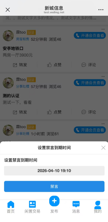 十二、功能新增:用户被禁言了,增加了禁言时间,并且会提示告诉客户具体的禁言时间,防止用户以为一直都不能用了