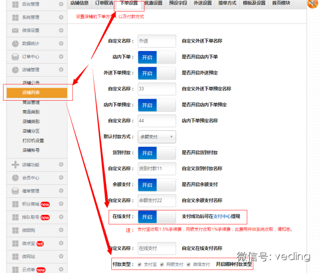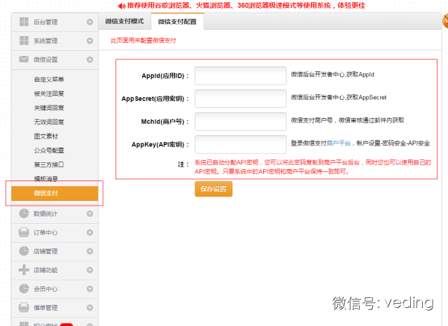 最后,您就可以到微订系统后台,填写相关支付设置: