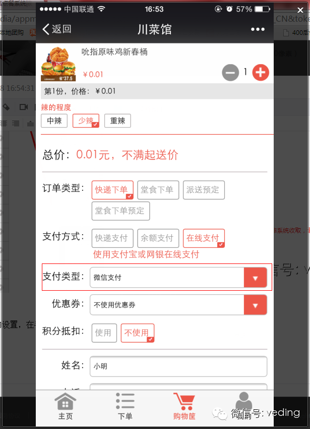 这样就完成了微信支付的设置,在手机端就能看到微信支付: