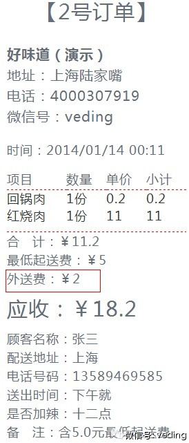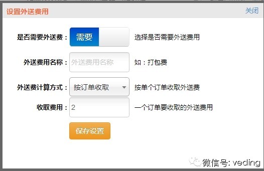 此功能需求量不是很大,但是实用性非常强。微订把每一位用户的需求当做自己的需求,从用户出发,小功能大开发,用心服务,用心完善每一个小功能。我们一直在努力成为国内一流的点单系统,没有最好只有更好,欢迎各位提出宝贵的意见。 上一条:现已完美支持店铺定位功能了! 免责声明:部分文章信息来源于网络以及网友投稿,本网站只负责对文章进行整理、排版、编辑,是出于传递更多信息之目的,并不意味着赞同其观点或证实其内容的真实性,如本站文章和转稿涉及版权等问题,请作者及时联系本站,我们会尽快处理。 责任申明:官方所有内容、图片如未经过授权,禁止任何形式的采集、镜像,否则后果自负! 标题:外送费用可以额外设定啦,支持自定义费用名称 地址:https://www.veding.com/static/v2/notice/42.html 相关资讯
