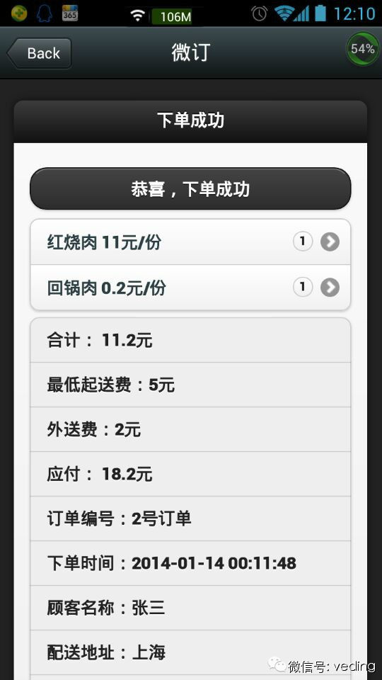 下单成功后,将会把外送费计入总价,并提示于顾客: